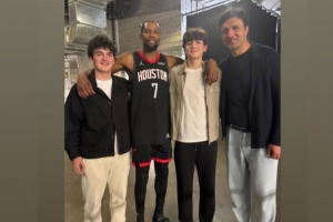 赛后,杜兰特在INS转发了一张自己和帕楚利亚及其儿子们的合影。