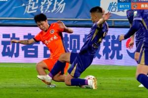 津门虎十人应战!黄嘉辉蹬到金永浩小腿,VAR介入后黄牌改直红