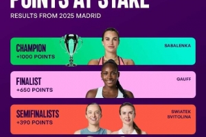 体育资讯4月17日讯 WTA官方盘点了WTA1000马德里站的保分情况,萨巴伦卡1000分,高芙650分,斯瓦泰克390分。