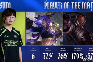 Assum两局合砍19-5-11的战绩,拿下NIP对阵JDG系列赛MVP