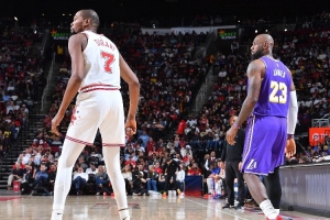 杜兰特:詹姆斯拥有划时代的运动天赋 我认为他可以打到45岁