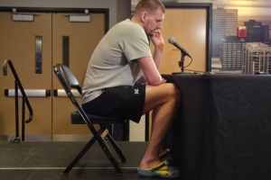 有趣的灵魂!约基奇穿小黄人洞洞鞋接受采访 此前cos该电影角色