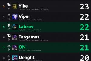 外媒统计先锋赛单场最高助攻:Delight对阵TES所选芮尔最高